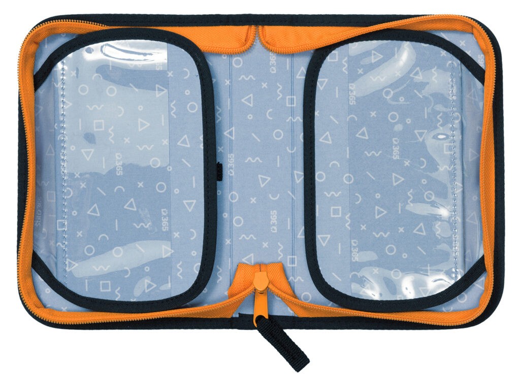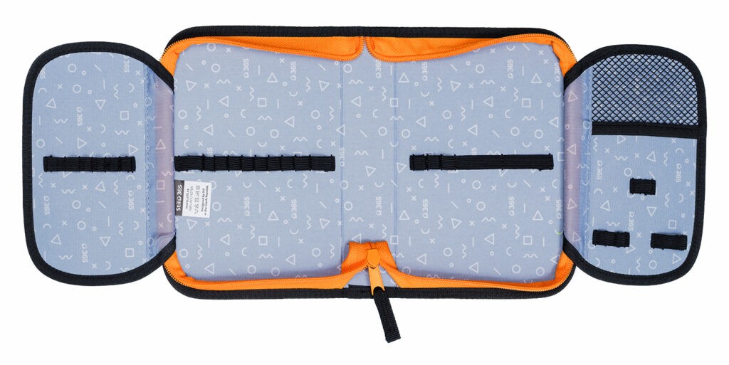 A Stil Giraffe iskolai tolltartó nagy kapacitással rendelkezik íróeszközök tárolására. Pontosan 24 különböző méretű tömör gumiszalag szolgál zsírkréták, írótoll, ceruzák, vonalzó, hegyező és radír kényelmes tárolására. Újonnan megnöveltük a tolltartó gerincének magasságát, így még több írószer és egyéb kellék fér el benne. A fedelek kívül átlátszó zsebbel rendelkeznek egy határidőnaplónak vagy más kisebb dokumentumoknak, belül pedig egy új hálós zseb található apró tárgyak tárolására. Egy aktatáskával vagy hátizsákkal színben összehangolt dizájn adott.