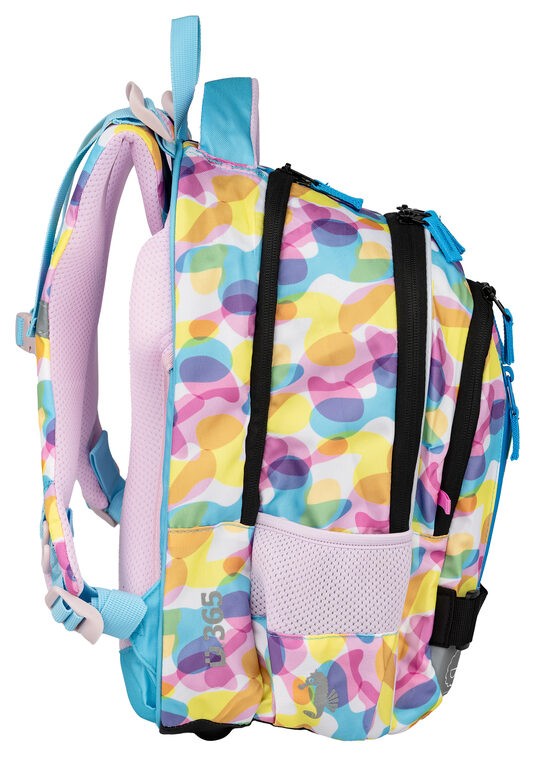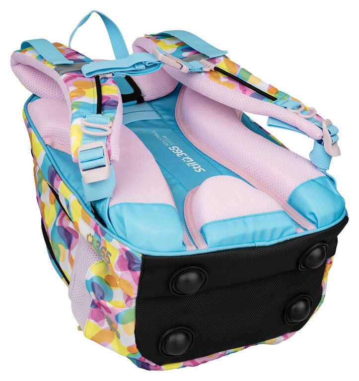 Anatómiai hátpanel alkalmazkodik a gyermek gerincéhez, az Air Flow rendszer és a légáteresztő párnázás biztosítja a levegő áramlását és a kényelmes viseletet. A mellkaspánt minőségi csattal gondoskodik a táska stabil és kényelmes elhelyezéséről a gyermek hátán. A biztonsági elemek nagyon fontosak, ezért az iskolatáska minden oldalán fényvisszaverő elemek találhatók, amelyek jobb láthatóságot és biztonságot nyújtanak sötétben.