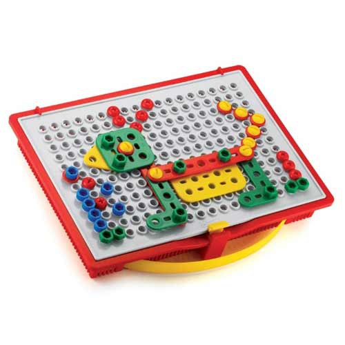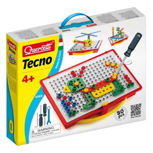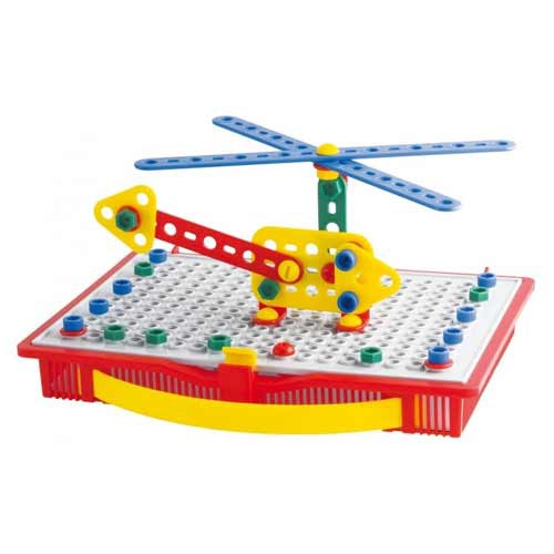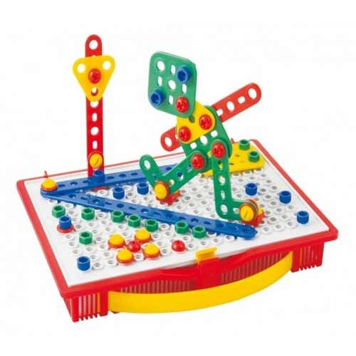 Techno készlet kis technikusoknak 4 éves kortól. Csavarhúzó és csavarkulcs, csavarok, anyák, alátétek és perforált alkatrészek felhasználásával lapos és többdimenziós kompozíciók készíthetők egy nagy alapra. A szett segít fejleszteni a kézügyességet, a vizuo-motoros koordinációt és a kreatív gondolkodást. A gyerekek így játszva ismerkednek meg a különböző alap szerszámokkal. Minden szépen becsomagolva egy hordozható bőröndbe. Kiváló minőségű műanyagból készült.