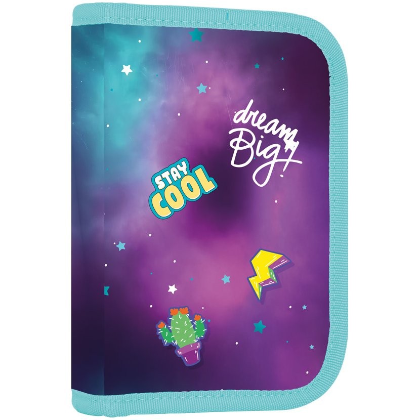 Egysoros, üres iskolai tolltartó két füllel, 25 gumihurokkal íróeszközök rögzítéséhez. A belső fülek átlátszó fóliával vannak ellátva az órarendnek.
