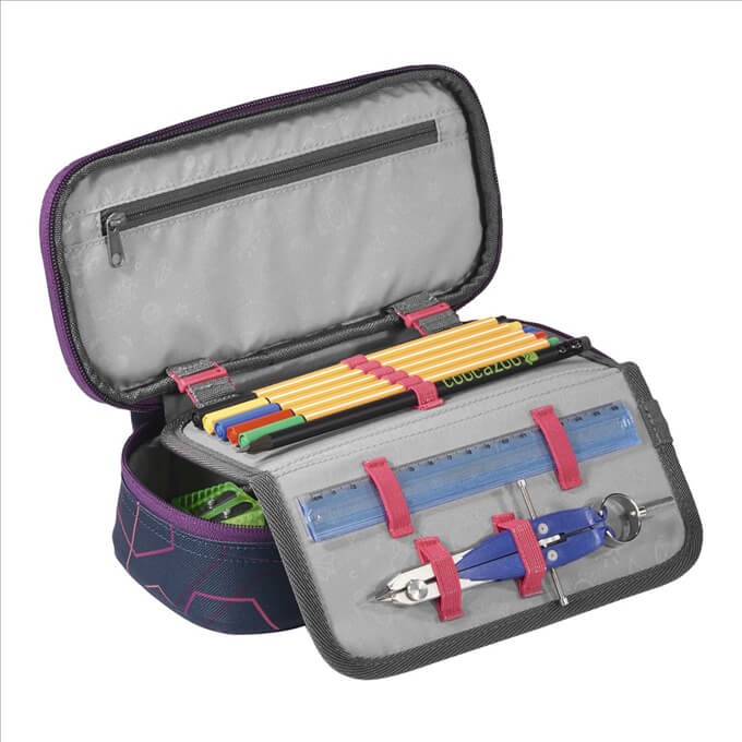 Minőségi diák tolltartó, ceruza, vonalzó, szögmérő, gumi és egyéb iskolai kellékek tárolásához.