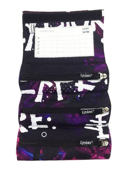 Diák tolltartó három különálló, zipzáras zsebbel és egy átlátszó fóliával az órarend elhelyezésére. Tépőzárral zárodik. A tolltartó nélkülözhetetlen része egy gyík alakú medál. A tolltartót egy ipari formatervezés védi, és nem találja meg máshol, mint az EXPLORE márkanév alatt.