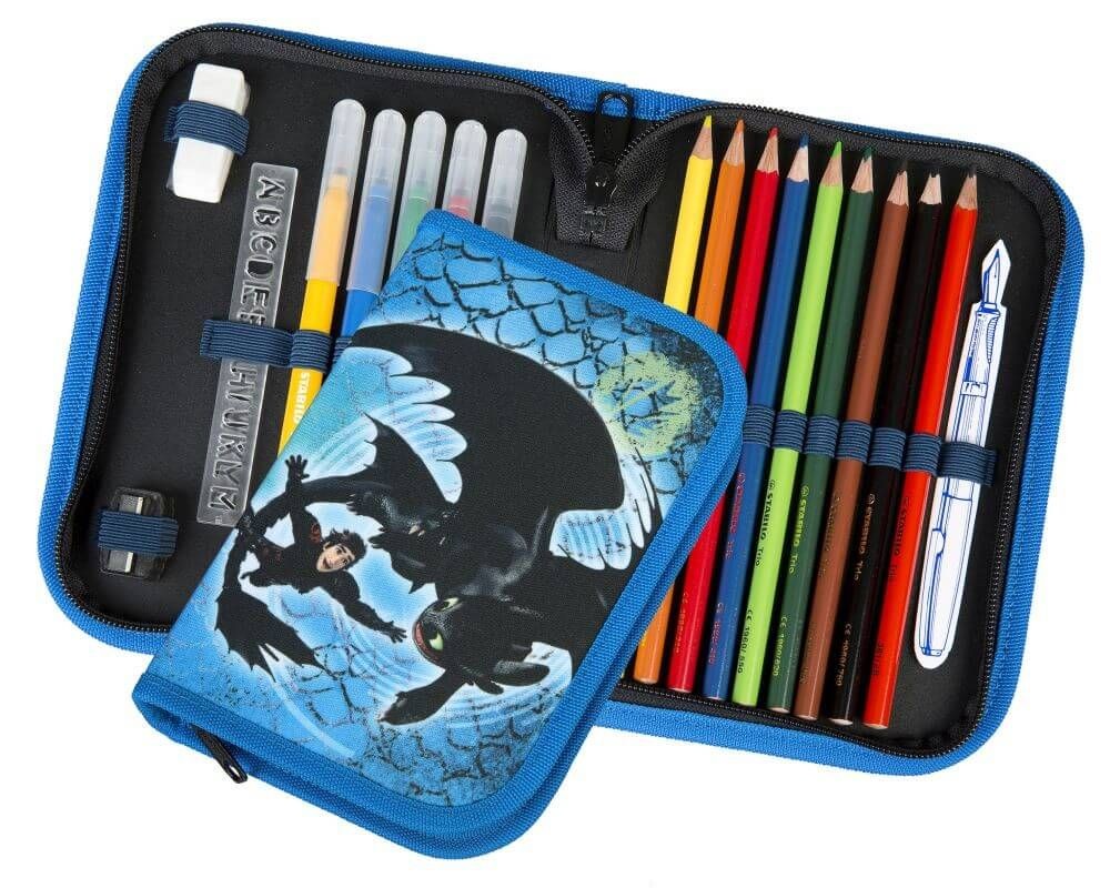 Iskolai tolltartó kedvenc motívummal, kiváló minőségű Stabilo márkázással feltöltött. Tartalmaz: 8 háromszög alakú színes ceruzát, 1 ceruzát, 5 filctollat, betűsablont, élezőt, radírot. Méretek: 19,5 x 13,5 x 3,5 cm