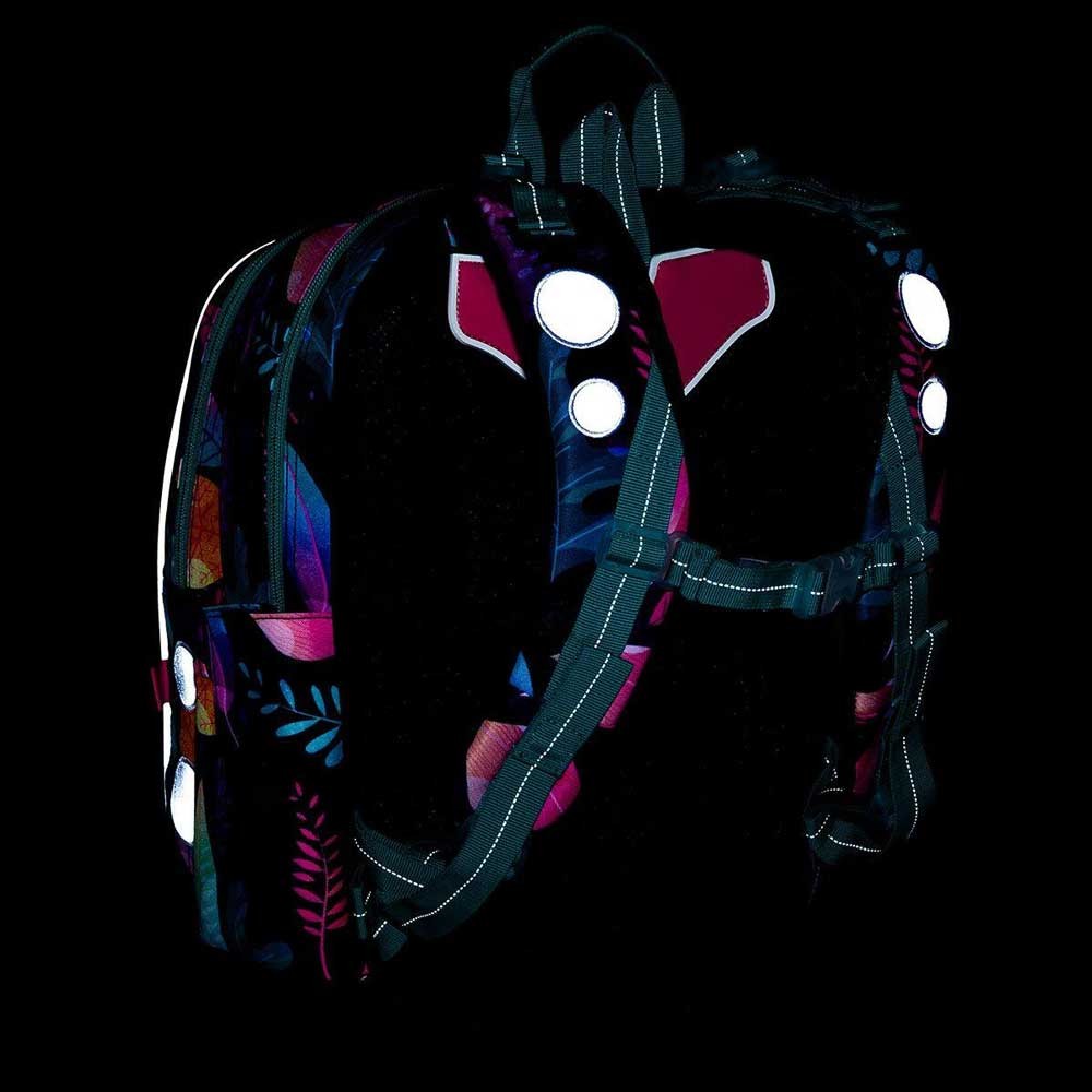 - fényvisszaverő elemek: a hátizsák elején és oldalán, a vállpántokon
