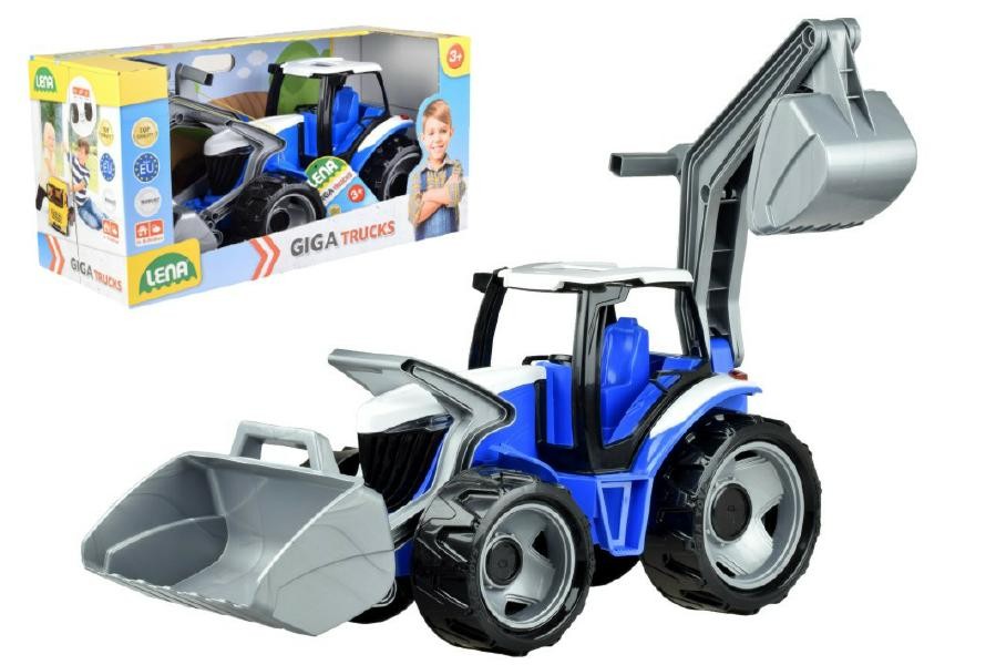 Traktor kanállal és kotrógéppel kék-szürke műanyag 65cm 3 éves kortól