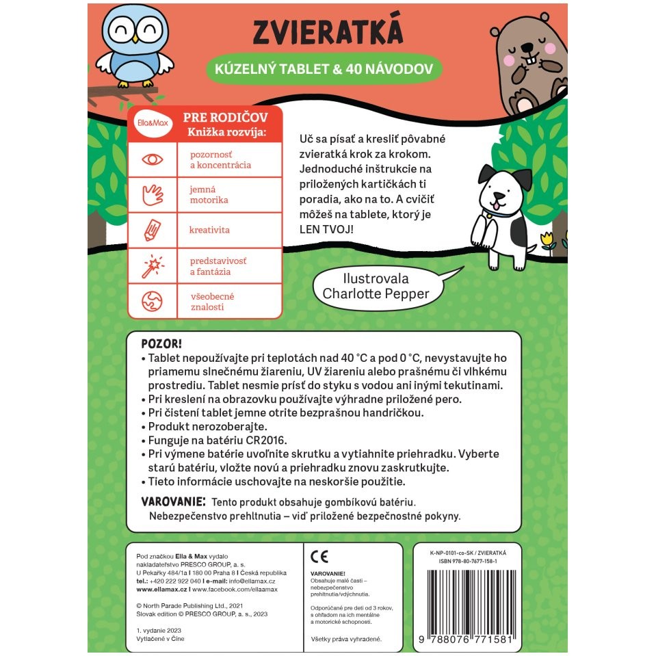 Tanulj meg írni és rajzolni aranyos állatokat lépésről lépésre. A mellékelt kártyákon található egyszerű utasítások megmutatják, hogyan kell ezt csinálni. És gyakorolhatnak egy olyan tableten, ami CSAK AZ ÖVÉK! Újra akarod kezdeni? Semmi gond – csak nyomja meg a Törlés gombot! Az oktatókártyákkal és tablettel való munkavégzés fejleszti a figyelmet és a koncentrációt, a finommotorikát, de fejleszti a kreativitást, a képzeletet, a fantáziát és nem utolsósorban az általános ismereteket is!