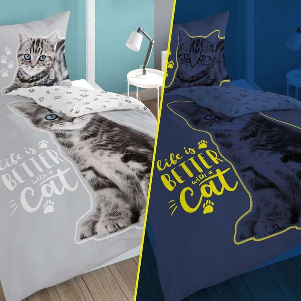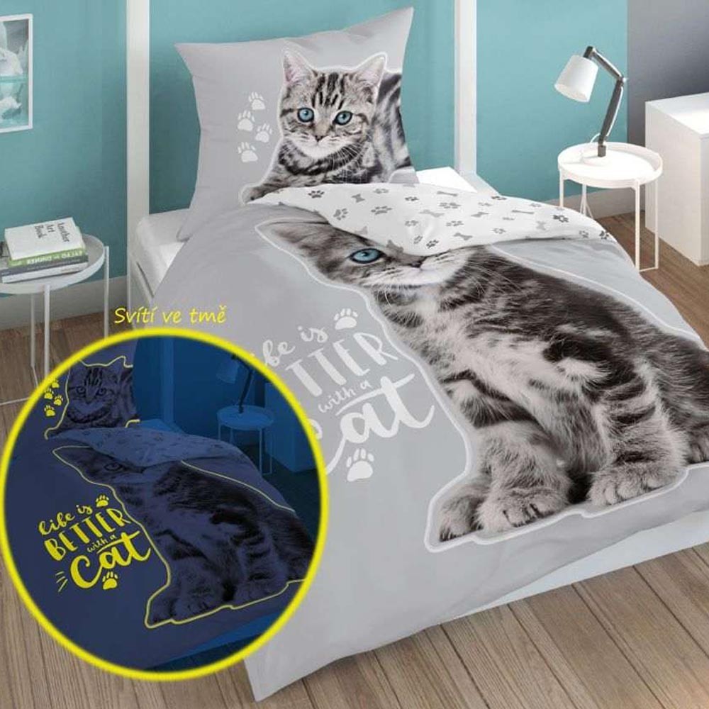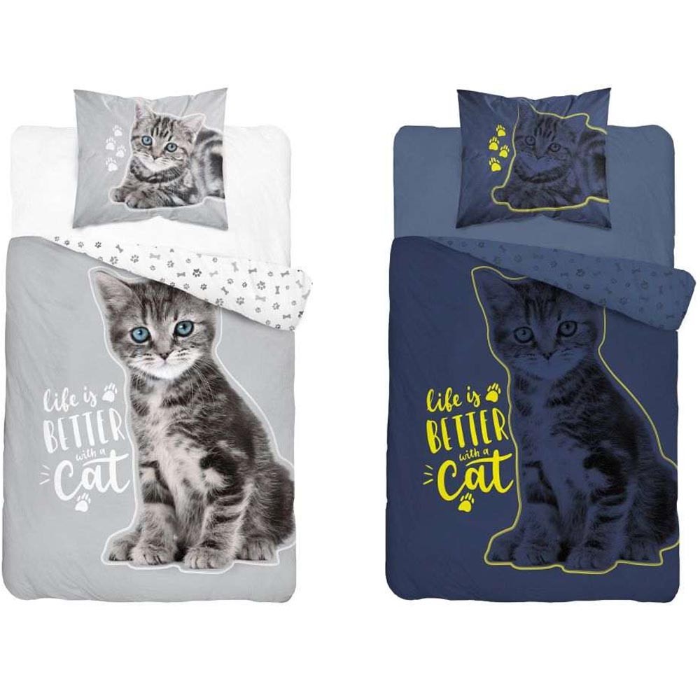 Kétoldalas gyermekágynemű Kitten Grey. Az ágynemű minden macska szerető számára alkalmas.