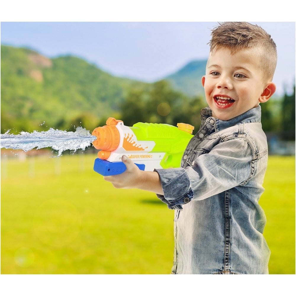 A pisztoly 30 cm hosszú, és ideális azoknak a gyerekeknek, akik a forró napokon frissítő vízcsobbanást szeretnének élvezni. A pisztoly könnyen vezérelhető, és hosszú permetezési tartományt tesz lehetővé, így nagyszerű szórakozást biztosít a barátokkal vagy családdal folytatott vízi csaták során. A termék méretei 30 x 16 x 6 cm. Gyermekeknek 3 éves kortól alkalmas.