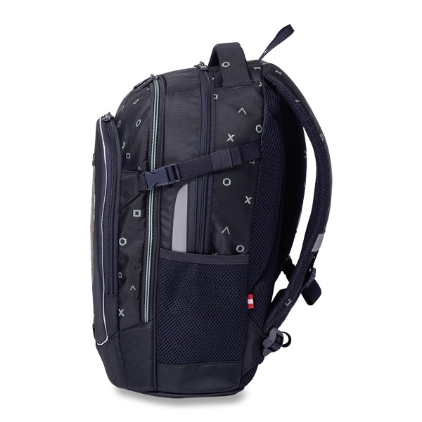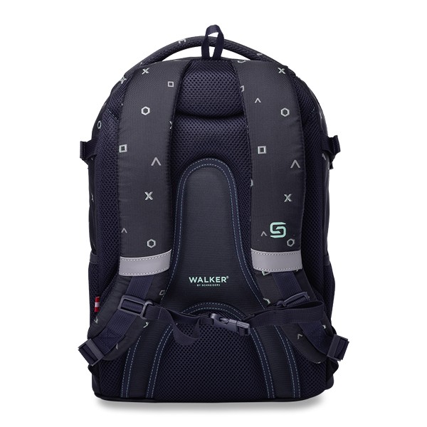 Iskolatáska fényvisszaverő elemekkel, párnázott háttámla 3D AirMesh szellőzéssel. (A 3D AirMesh szerkezet hálórétegeket tartalmaz, amelyek háromdimenziós légzsebeket hoznak létre. Ezek a zsebek javítják a szellőzést és segítenek gyorsan elvezetni a nedvességet. Az elülső zseb LED-es élei, amelyek a zseb tetején található PUSH feliratú kapcsoló megnyomásával aktiválhatók. Az elemeket nem tartalmazza (2x AA 1,5 V). Anatómiailag formázott és állítható magasságú, párnázott vállszíjak állítható mellkasszíj. Kompressziós hevederek, hátsó szerkezet meghosszabbított párnázással és kiterjesztett alsó merev konstrukció a jobb stabilitás érdekében. Hátsó cipzáras rekesz párnázott laptop zsebbel 15"-ig és tablet zsebbel. Középső rekesz és nagy első zseb rendszerezővel és belső cipzáras zsebbel, cipzárral zárható. Oldalsó húzózsinórok a hátizsák térfogatának csökkentésére. 2 elasztikus, hálós oldalzseb, elég nagy egy palack tárolására.